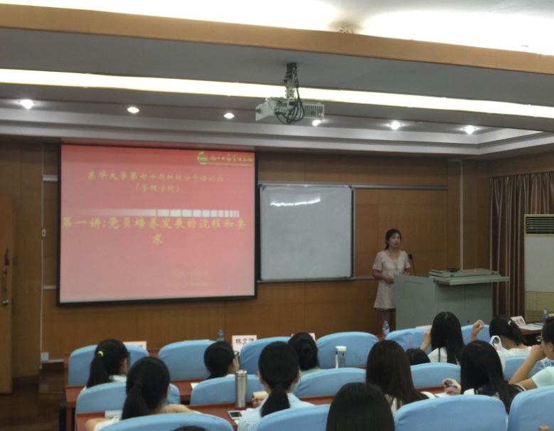 2016年9月6日星期二下午两点半,成人网址 第七十期入党积极分子培训班第一课于旭日楼211开讲了。来自成人网址 的党总支副书记叶晓燕老师担任主讲嘉宾。叶老师曾在我校党委组织部、计算机学院党总支等部门工作过,已经有十多年党建工作经验,可谓是资深“党建老师”。她为学员主讲了:《党员培养发展的流程和要求》,从递交入党申请书开始一直到最后成为一名预备党员的各个流程,其中的每一个环节她都做了详尽的介绍和说明,学员们全神贯注,获益良多。 她指出入党要坚持自愿原则,由本人向党组织递交书面申请,随后参加党章学习小组,并经过党支部讨论确定成为一名入党积极分子。推优是由团支部成员向党组织推荐优秀的团员作为党的后备军,是考察积极分子群众基础的重要环节。如今部分学生只注重班团外的社会工作,却忽视了自己所在的班级集体,甚至经常缺席班团活动,这样很容易缺乏群众基础。一名入党积极分子,要将服务同学、服务社会的宗旨放在首位。入党积极分子还需要一个季度交一次思想报告,以务实的态度分析自身的理论学习、专业学习和社会实践,这将与入党积极分子考察表结合。在党校学习的入党积极分子要在党校学习期间,认真学习,同时保持与入党联系人的交流,便于党组织了解他们的情况。学院为了把好入党发展关,还增加了发展对象理论考试和入党答辩环节。入党理论考试主要考察对党章、党规、党和国家的大事,时事政治等,需要积极分子日常加强学习,多读书、读报,关注新闻,不断积累,提升个人思想政治素质。入党答辩时是要结合具体事例来介绍如何提升个人的思想素质,如何积极学习和带动身边同学学习,如何为集体和同学服务等。实践的过程不在于是否有光鲜的成绩,而在于默默付出,乐于奉献。详细的讲解使学员们明确了前进的道路和努力的方向。叶老师还很接地气地指出作为一名入党积极分子如何向党员标准看齐,如何自觉践行共产党员先进性等,并提出很好的建议。此外,叶老师还就近期的时事政治、国际国内热点事件和学员们进行了互动和探讨,使学员们明白了培养政治敏感性和国际视野的重要性,尤其是作为经管学子更要重视与专业密切相关的国际国内重要会议和业界发展趋势,做一个心怀天下、心怀国家的青年,争取早日加入党组织。