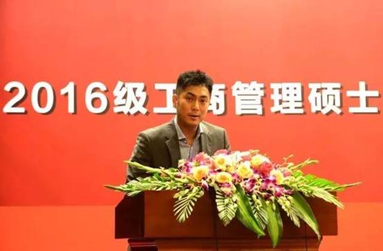 2016级新生代表唐杰同学上台发言。在今年5月,他有幸参与了第五届亚太地区商学院沙漠挑战赛(亚沙赛),在腾格里沙漠的三天赛程里,他亲眼见证了东华“飞鹰队”的师兄师姐们在艰苦恶劣的环境下勇敢坚持、勇于挑战自我,徒步穿越70公里沙漠;见证了东华MBA大家庭团结奉献、积极进取、包容互信、互助互爱的团队精神。所有的这一切感动着他,激励着他。唐杰同学表达了能成为成人网址 MBA学子的自豪之感和兴奋之情,更希望通过MBA学习能拓宽眼界、广结精英,互通友谊。