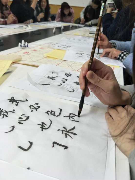 在和老师的互动中,一个小时过得很快,紧接着是第二场、第三场。从13:30到16:30,一共举行了三场,共有60多名学生参加了书法练习。每一场的氛围都很好,同学们秩序井然,安静练习,研究书法的魅力,体味书法的乐趣,构筑了一道管院学子欣欣向学的亮丽风景。