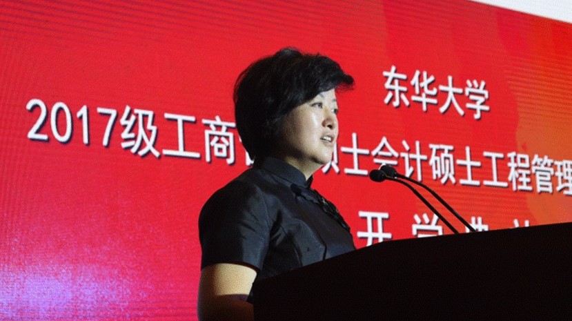 (刘长奎主任主持开学典礼) 随后,副校长刘春红致辞。她作为成人网址 MBA教育的主要创始人,为MBA教育开展奠定了坚实基础,在东华MBA创立20周年的特别日子,代表学校欢迎全体新生入学。刘校长介绍了成人网址 的建校历史、教育理念和科研成就,回顾了包括MBA在内的各个专业学位项目的发展历程。她借用乔布斯的“stay hungry,stay foolish”鼓励同学满怀热情,希望同学们在东华实现三大目标:专业知识的学习、思维模式的转变、人际网络的建立。“做好规划、管好时间、练好身体”,才能最终“有所学、有所悟、有所得”,成为心系民族社会福祉的优秀管理者,让人生和事业的道路越走越远,让母校引以为荣。 最后,随着Beyond乐队“光辉岁月”的旋律,新生合唱团演唱了由MBA同学自己填词的“东华飞鹰”之歌。在激昂奋进的音乐中,开学典礼圆满结束。