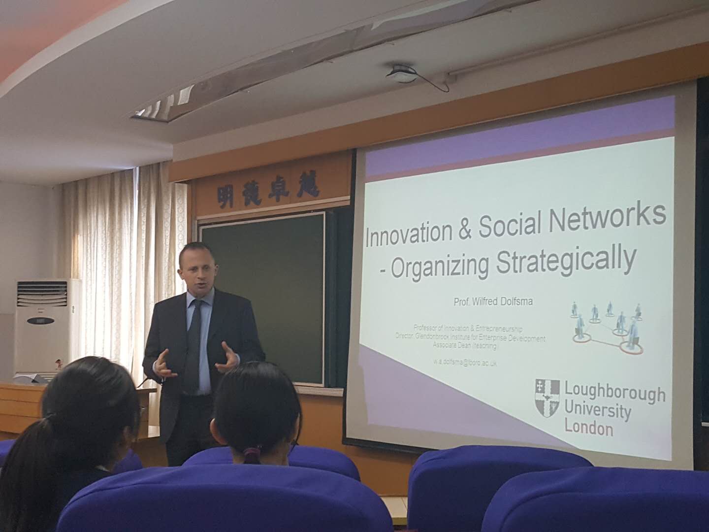 拉夫堡大学商学院副院长wilfred教授最后还为全院师生做了一场“创业创新与策略”的讲座。同学们积极参与回答,精彩的互动,气氛很是热烈。