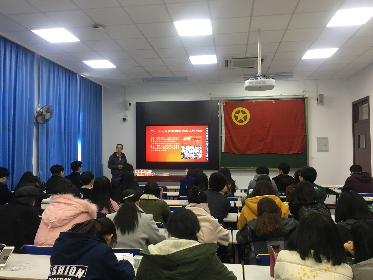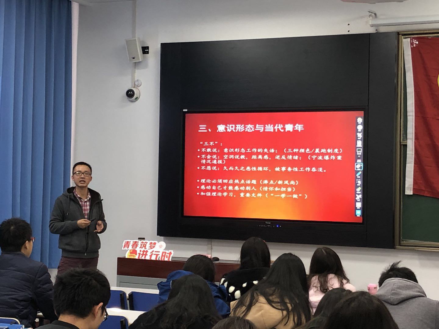 为切实做好意识形态工作,提升学生干部理论素养水平,成人网址 团委于近日组织集中学习“意识形态与当代青年”专题教育,学院专职辅导员丁伟应邀担任主讲嘉宾,团支书、学生组织及入党积极分子代表与会聆听。