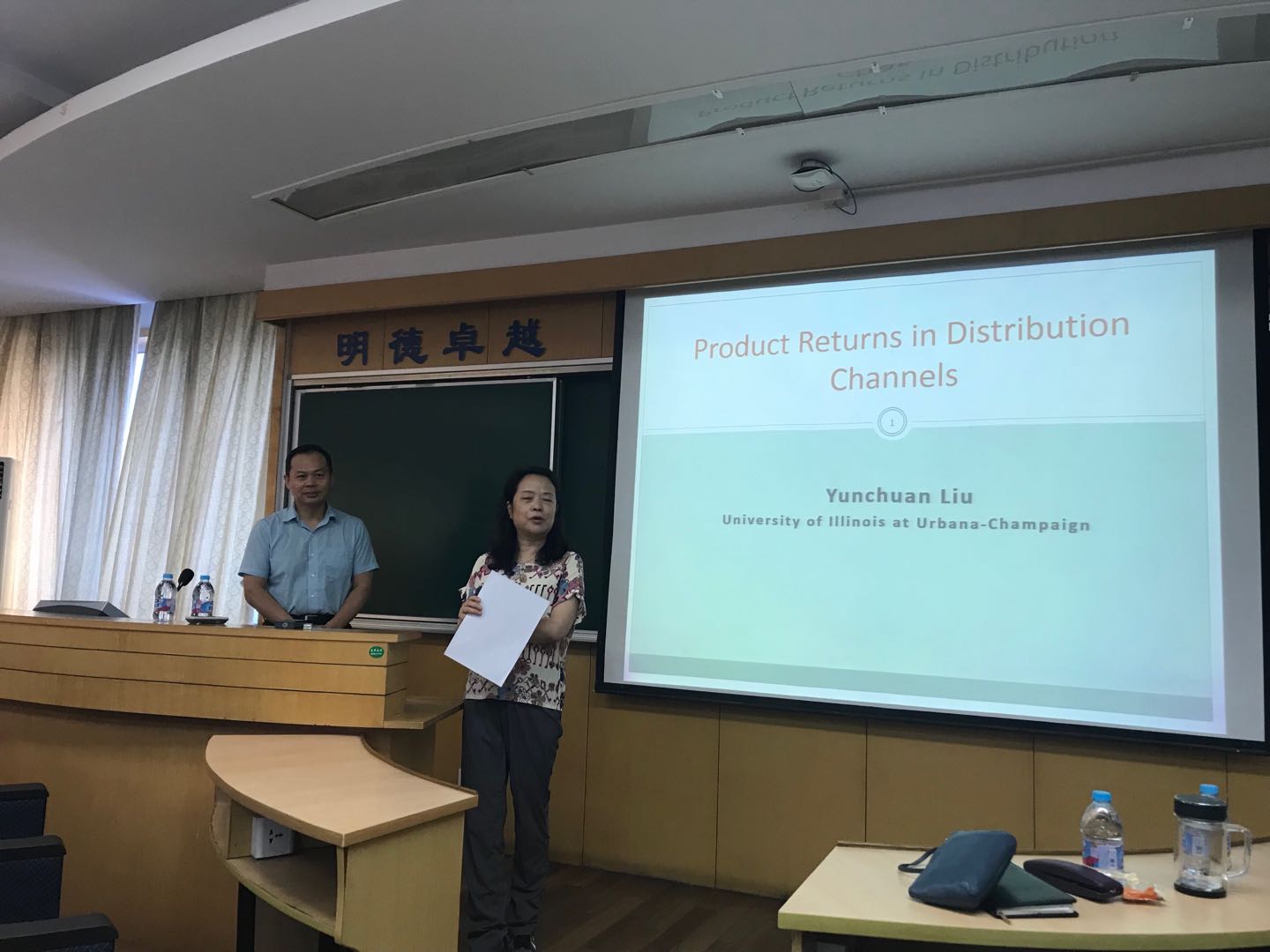 美国伊利诺依大学香槟分校刘云川教授学术报告通讯稿 2018年5月31日上午10点,应成人网址 邀请,美国伊利诺依大学香槟分校(UIUC)终身教授,商学院本科项目学术主任,刘云川先生做客成人网址 ,在旭日楼306做了题为《Return Policies in Distribution Channels》的报告。成人网址 教师、博士、研究生等共50余人聆听了报告。成人网址 副院长徐琪教授主持了报告会。