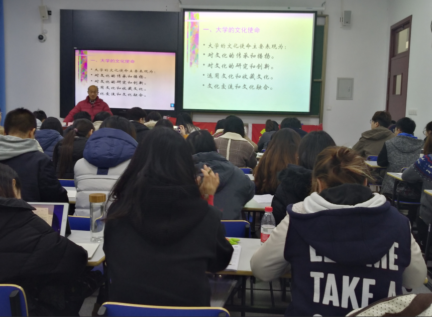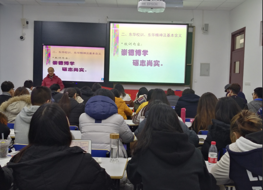 2018年12月11日,成人网址 成人网址 2018年预备党员培训班学员在一教210聆听了一场主题为“东华校训与东华精神”的党课。主讲人关工委讲师团成员贺善侃教授从东华的校训和东华的精神出发,深入探究和剖析校训的文化起源和内涵,鼓励每一位东华人践行东华精神,做杰出东华人。贺教授生动又深刻的演讲,让每位学员对东华校训和精神有了更深的解读。 本次报告分为五个部分,分别是大学的文化使命、东华校训和精神的基本含义、东华校训和精神内含的人文精神和科学精神、校训和精神的历史底蕴以及践履东华精神、做杰出东华人。
