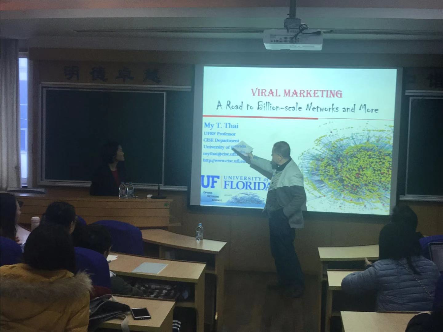 2018年12月19日上午十点,来自佛罗里达大学的My Thai教授在旭日楼306开展了一场主题为“Viral Marketing – A Road to Billion-scale Networks and Future”的学术报告,由院长徐寅峰教授主持。