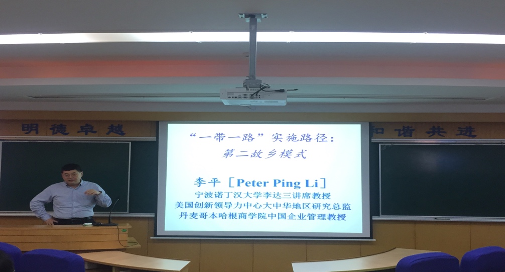 5月15日(周三)下午13:30,宁波诺丁汉大学李平教授在旭日楼306教室为成人网址 师生进行了一场题目为“一带一路实施路径:第二故乡模式”的学术报告会,报告会由我院王雷教授主持。