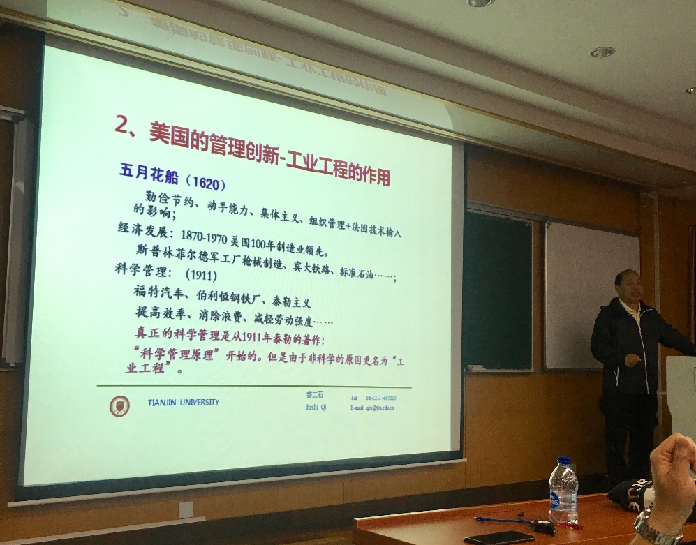 针对美国的管理创新,齐教授重点讲述了工业工程的作用。他首先讲述了1620年五月花船的故事,体现其发展是受到组织管理以及法国技术输入的影响,同时伴随着经济的不断发展,1870-1970美国的制造业在一百年内遥遥领先,而真正的科学管理则是从1911年泰勒的著作“科学管理原理”开始的。针对日本的管理创新,齐教授主要讲述了丰田生产方式TPS的产生。