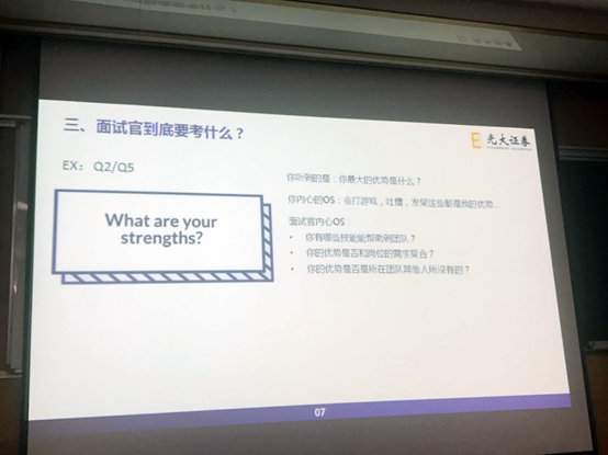 光大证券互联网金融部总经理王谦给同学讲述了近年校园招聘动态,券商常见面试类型,面试准备以及面试官常问的问题。