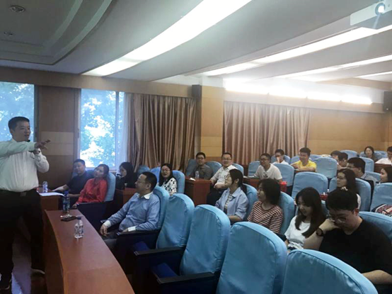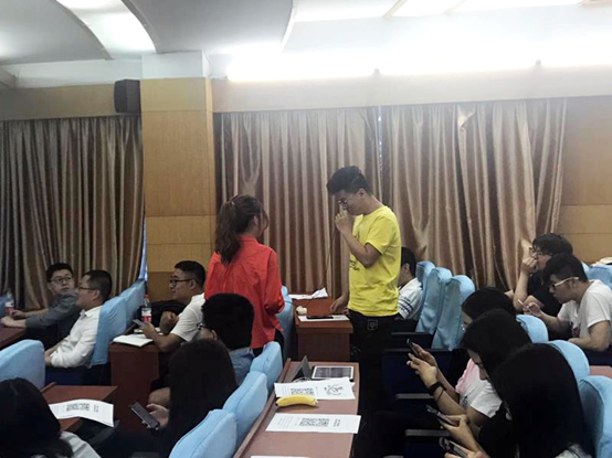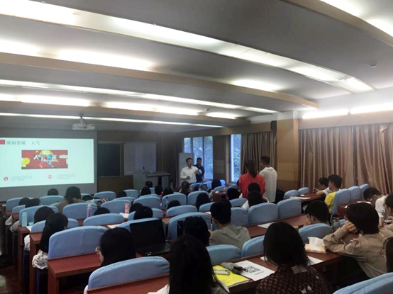5月26日周日上午,暴雨如注,天气不好难挡同学参与热情,9点20分,在旭日楼211教室,“证券行业分析与券商职业前景介绍——暨《股东来了》走进成人网址 ” 活动拉开帷幕。光大证券财富管理中心总经理王智首先给到场同学介绍证券行业现状、证券市场生态体系,包括投资规模、从业人数,还跟同学互动,送出两张彩票,让同学感受价格本质与心理估值的差距。他还给大家介绍了CFA考试的内容。