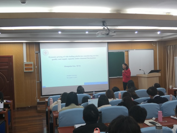 徐琪老师“Dynamic pricing of ride-hailing platforms considering service quality and supply capacity under demand fluctuation”的报告聚焦网约车平台的供求与服务质量等问题,与在座师生开展了深入的交流探讨。